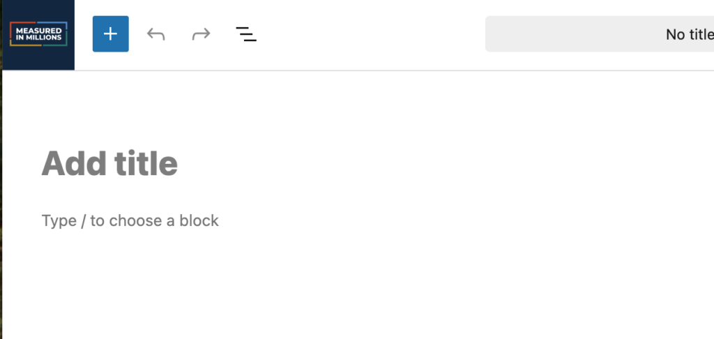 Once you’ve started a new article, add a title at the top of the page, and begin adding your content.