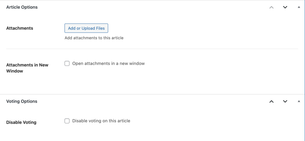 At the bottom of the editor, you’ll find several options for the article. If you need to attach a document to the article, this is where you would do it.